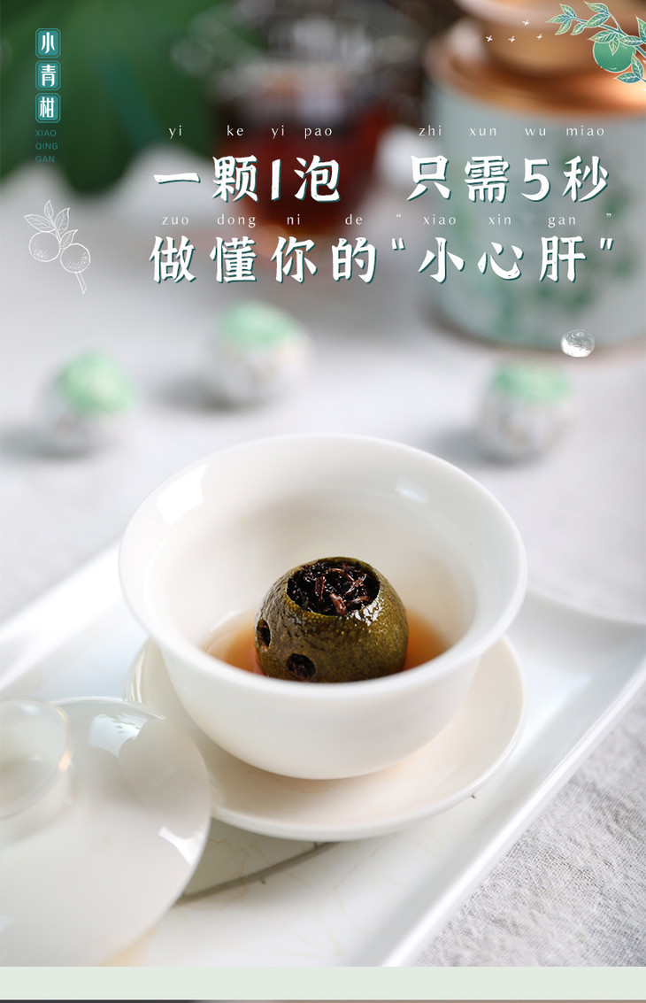 融合了柑果香和熟茶甜润的《合一小青柑》,冲泡方便且茶性温和,男女老少皆宜品。
