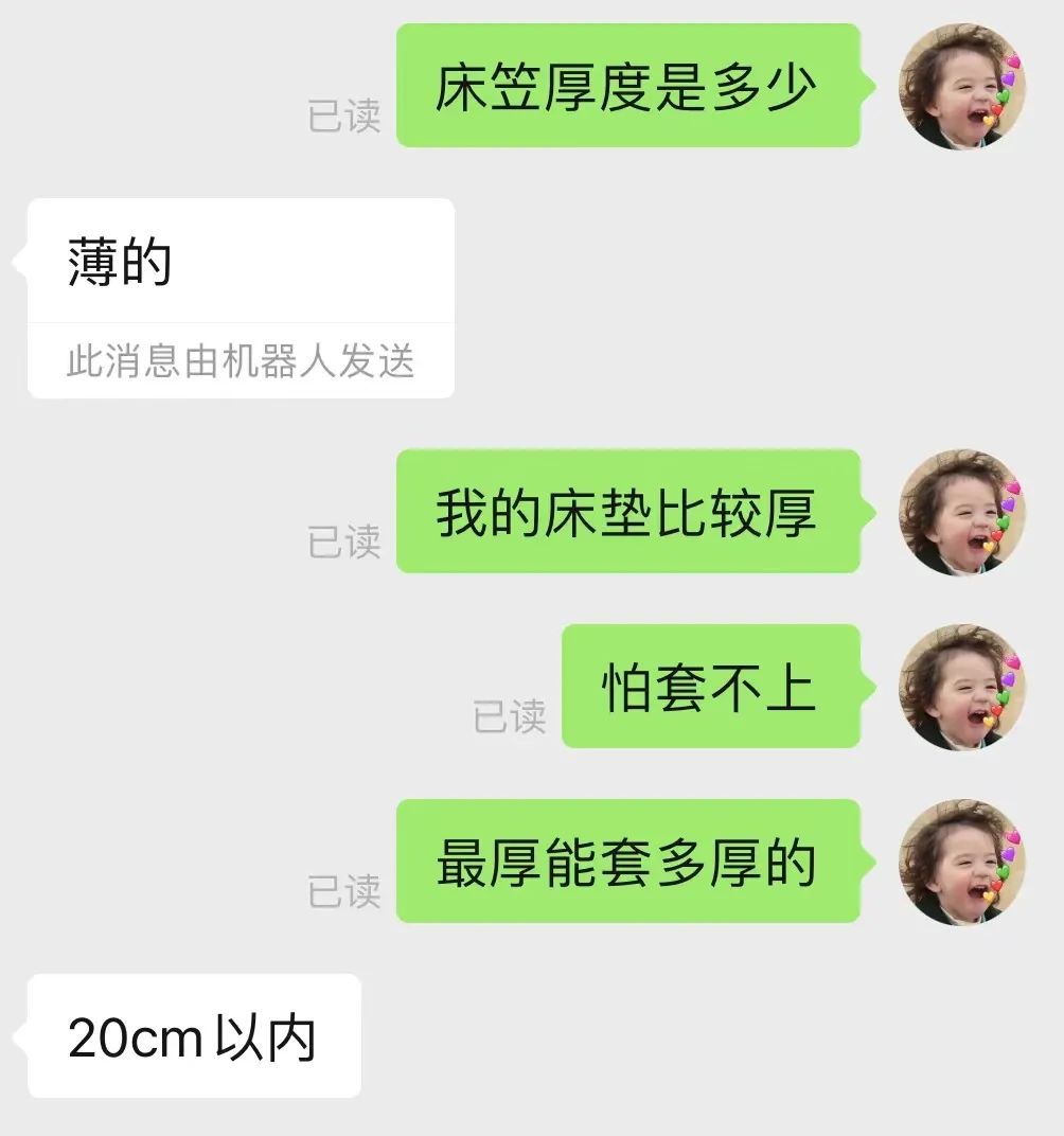 但床太小、太宽、床垫太厚都不好买到刚刚好的床笠。助理小妞王一之前就为选床笠费了好大劲,她的床垫很厚,看了很多喜欢的都套不上,最后只能放弃了。▼
