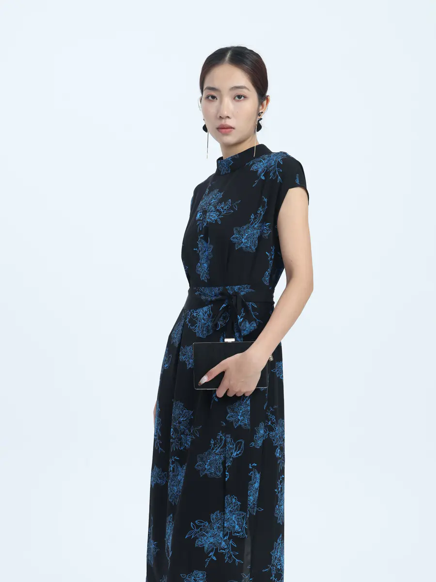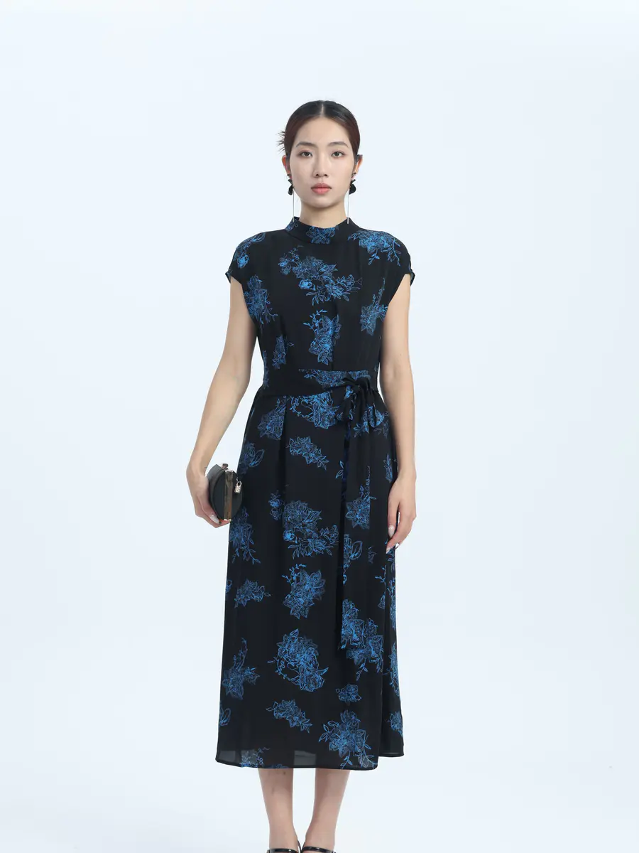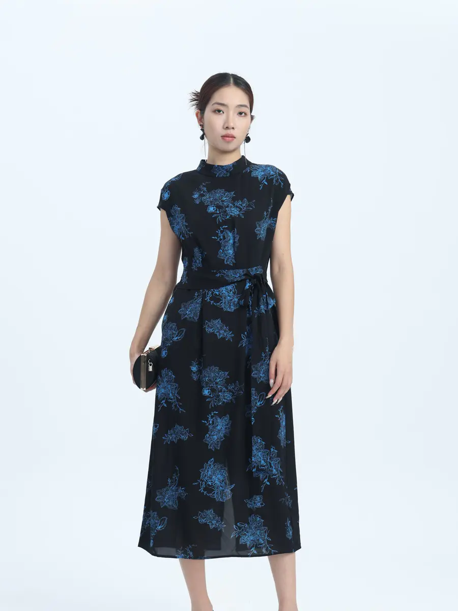 墨色底,蓝花绽 —— 邂逅复古优雅裙