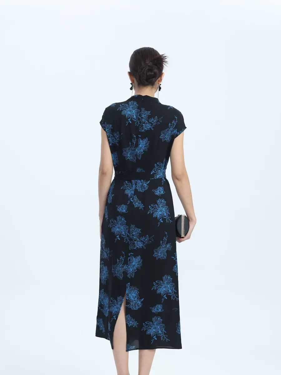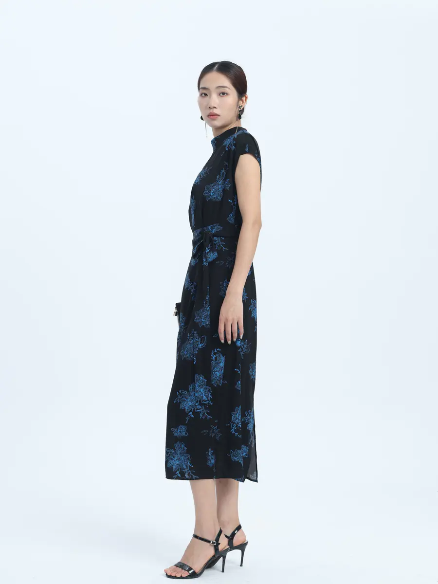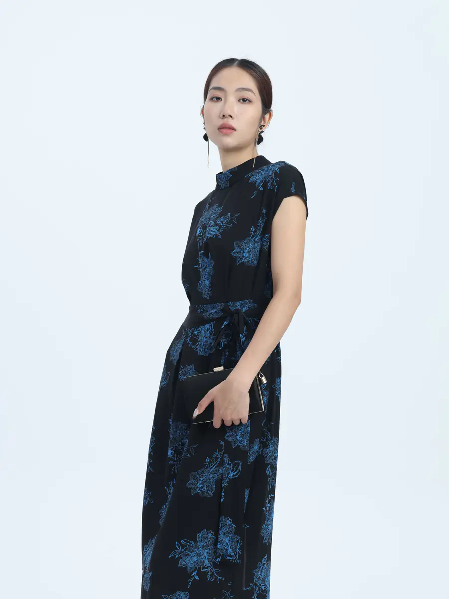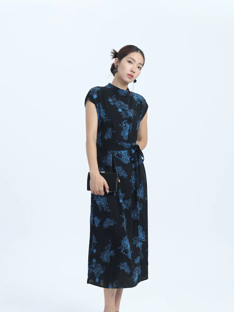 墨色底,蓝花绽 —— 邂逅复古优雅裙