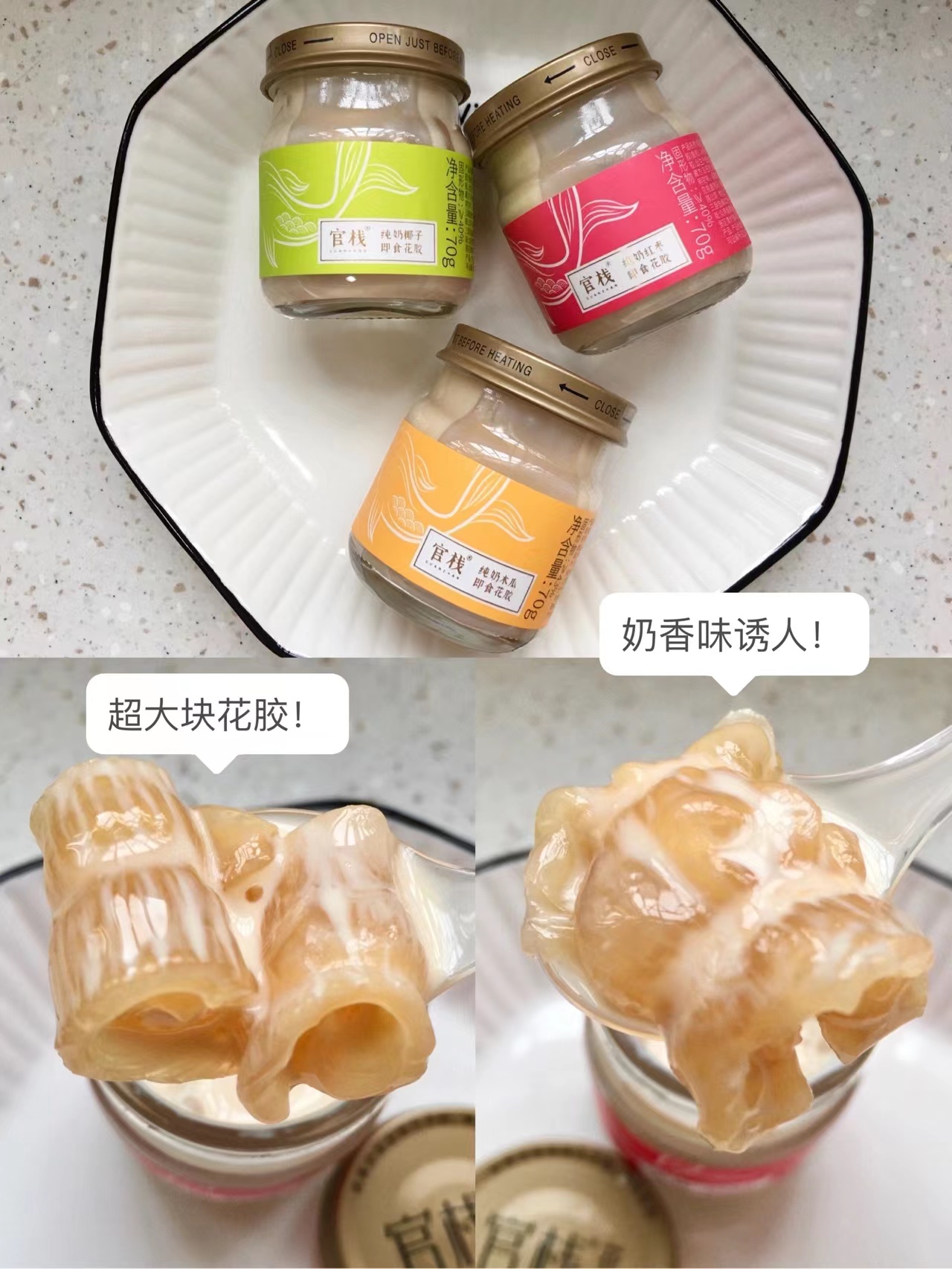 ➡️我吃的官栈的即食花胶,料很足,深海厚花胶+纯牛奶🥛~(料这么多,我还担心它家亏钱😃)