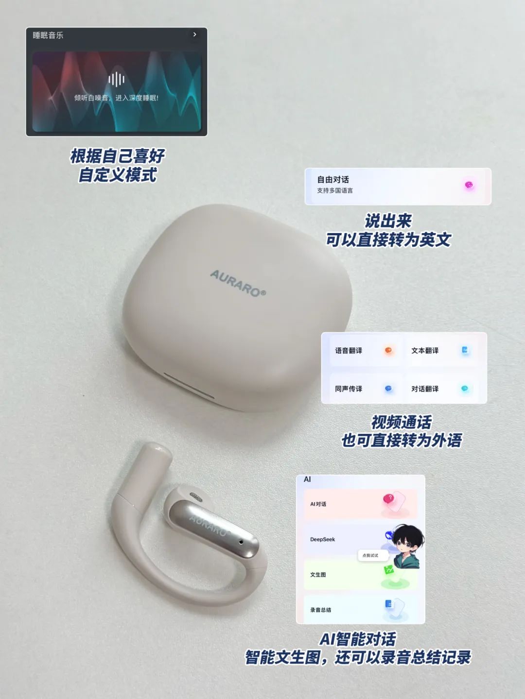 在耳机听音乐打电话的基础功能上,它搭载了人工智能大模型的耳机,就像一个智囊团!能做语音文字同时记录、语音文字同步翻译、能导航。