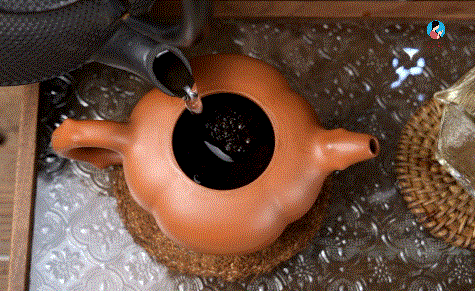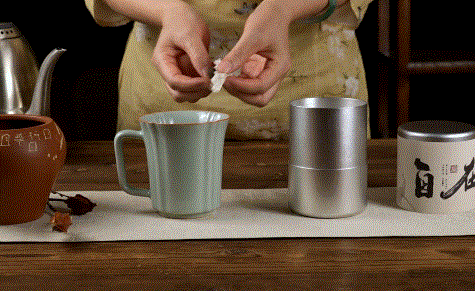 抓4颗《自在》,剥去绵纸,放入190毫升的紫砂壶中(茶水比1:22。)