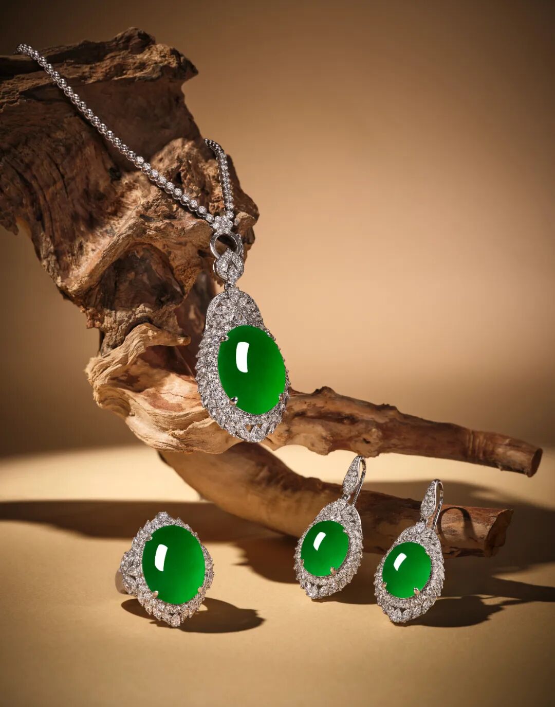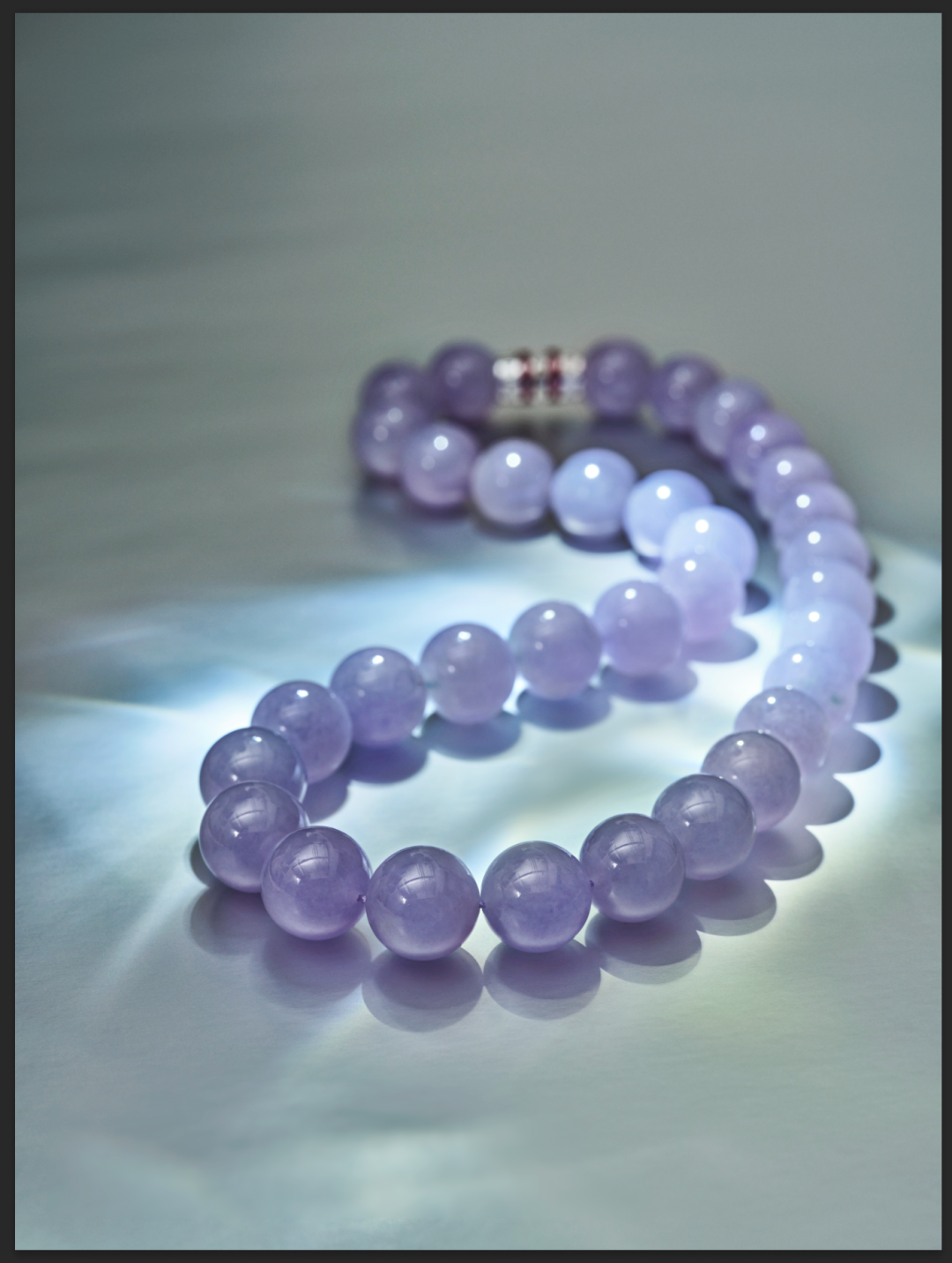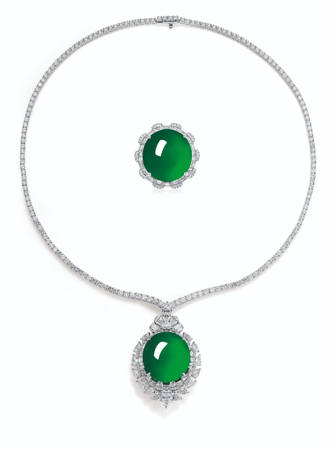 此外,我们亦将呈献多件上乘翡翠臻品,既有色泽浓艳、质地莹润的帝王绿蛋面,也有春色莹莹的紫罗兰翡翠珠链,皆承载东方美学的含蓄与灵韵。
