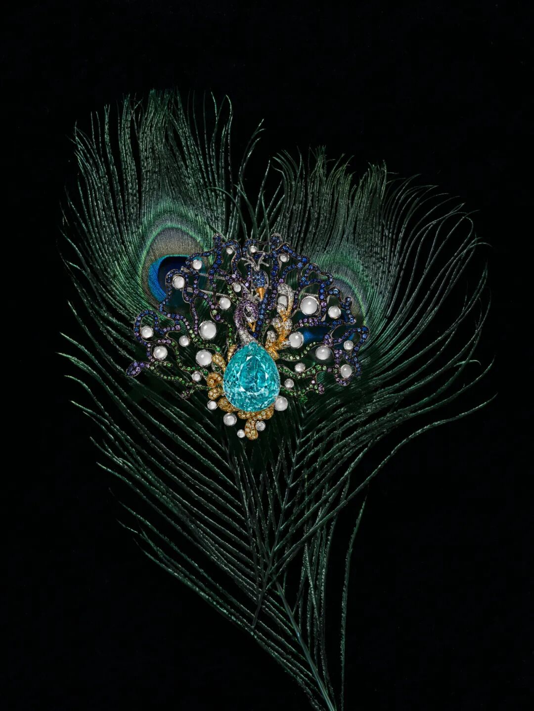 帕拉伊巴,其独有的霓蓝色调,宛如电流流动于晶体之中。帕拉伊巴不仅代表自然造化的杰作,更是当代收藏家竞相追逐的珍宝,尤其是干净透彻的晶体极难寻觅。本季将为大家带来44.57克拉帕拉伊巴碧玺「孔雀」胸针及41.03克拉帕拉伊巴碧玺吊坠,罕见的大克拉干净晶体,湛蓝如海,光华如电!