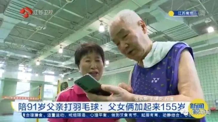 再比如,南京的张老先生从70岁开始打球,一打就是20多年,现在带着64岁的女儿和他一起打,父女二人加起来有155岁,打起球来也不输小年轻。