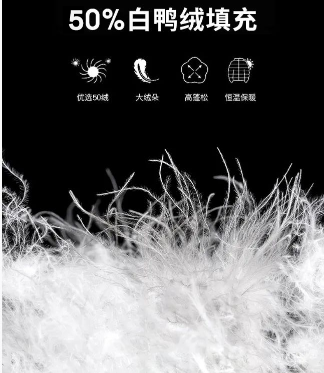 大厂品质,真正的白鸭绒填充,朵状饱满,轻柔细腻,不含长毛片粉尘。