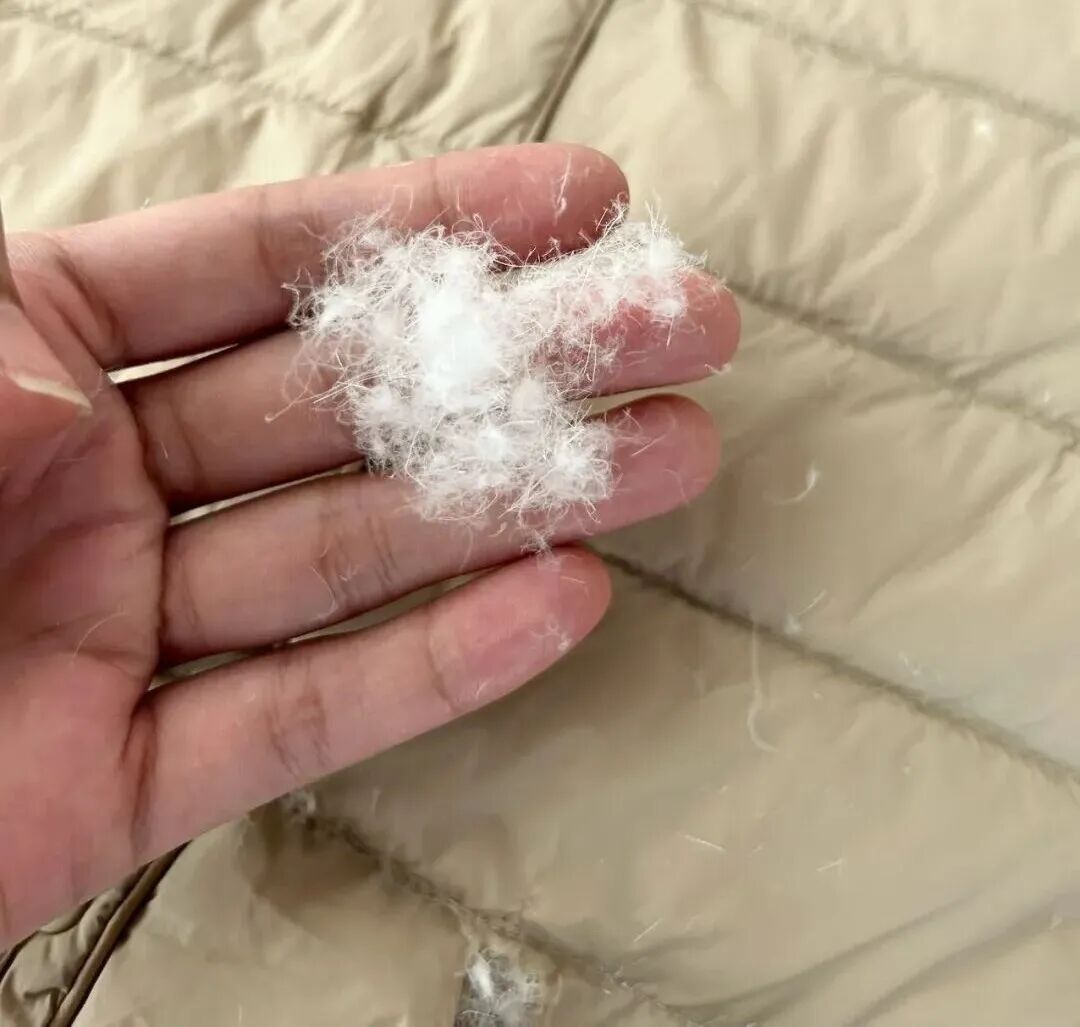这是因为工厂制作时为了追求快,都是整件衣服先充绒,再用机器缝线固定,细小的羽绒毛会被留在针脚处,容易跑出来。
