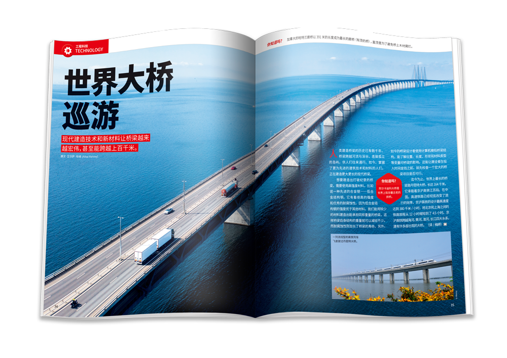 现代建造技术和新材料让桥梁越来越宏伟,甚至能跨越上百千米。