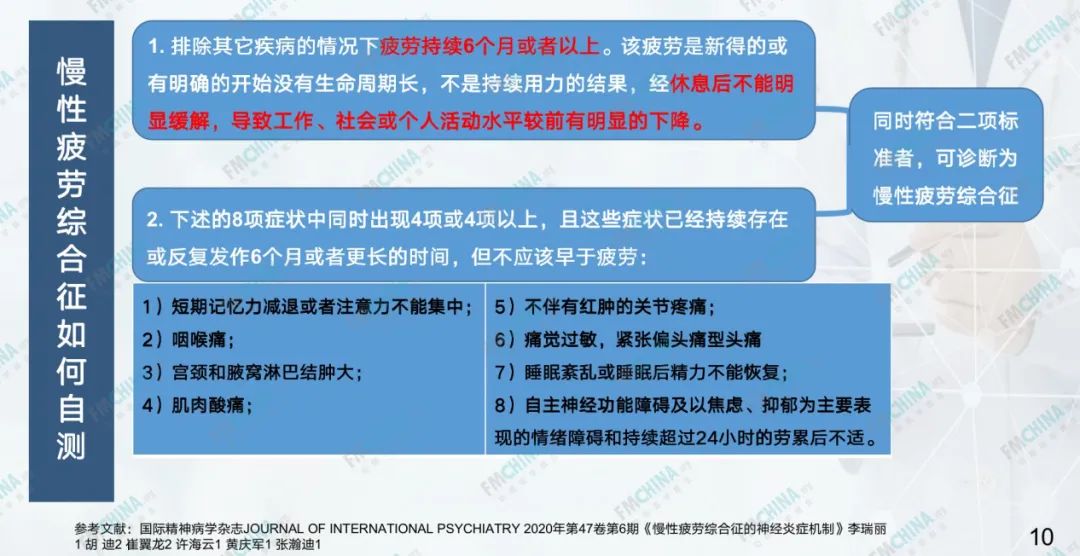 慢性疲劳综合征的自测发现患者符合慢性疲劳综合症的诊断标准。