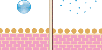上图中左边为普通的补水机制,右边是无针水光的密集基础补水,所含水分的分子量不同,对肌肤的滋养效果也就完全不同。