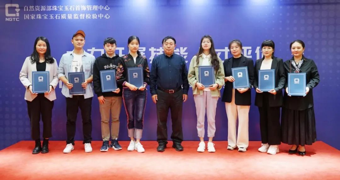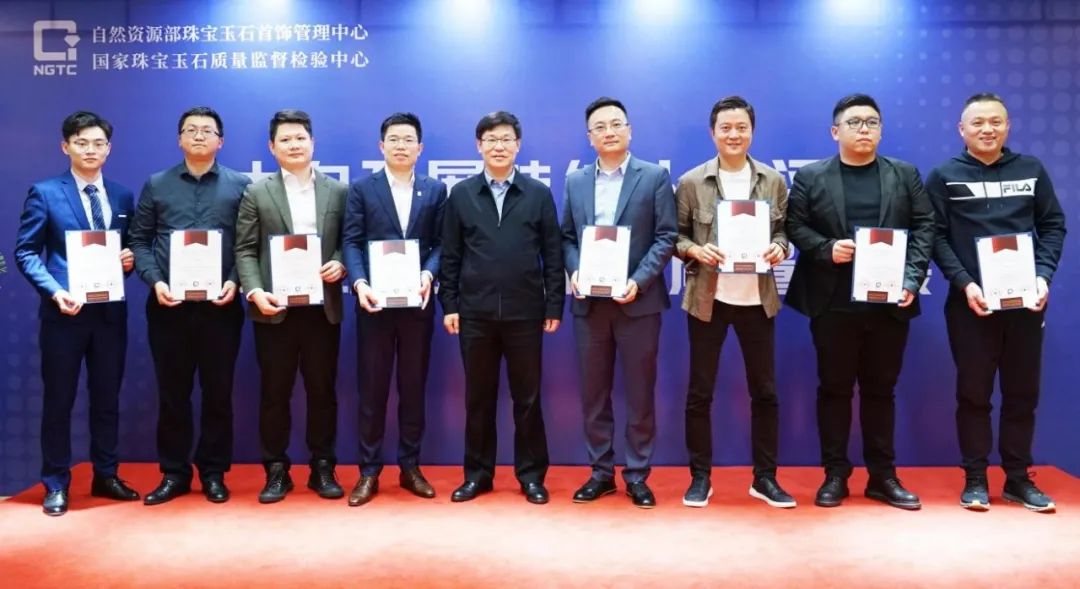 由珠宝国检(NGTC)党委副书记梁振杰为首批“NGTC 高级珠宝首饰工艺师”颁发人才认定证书。