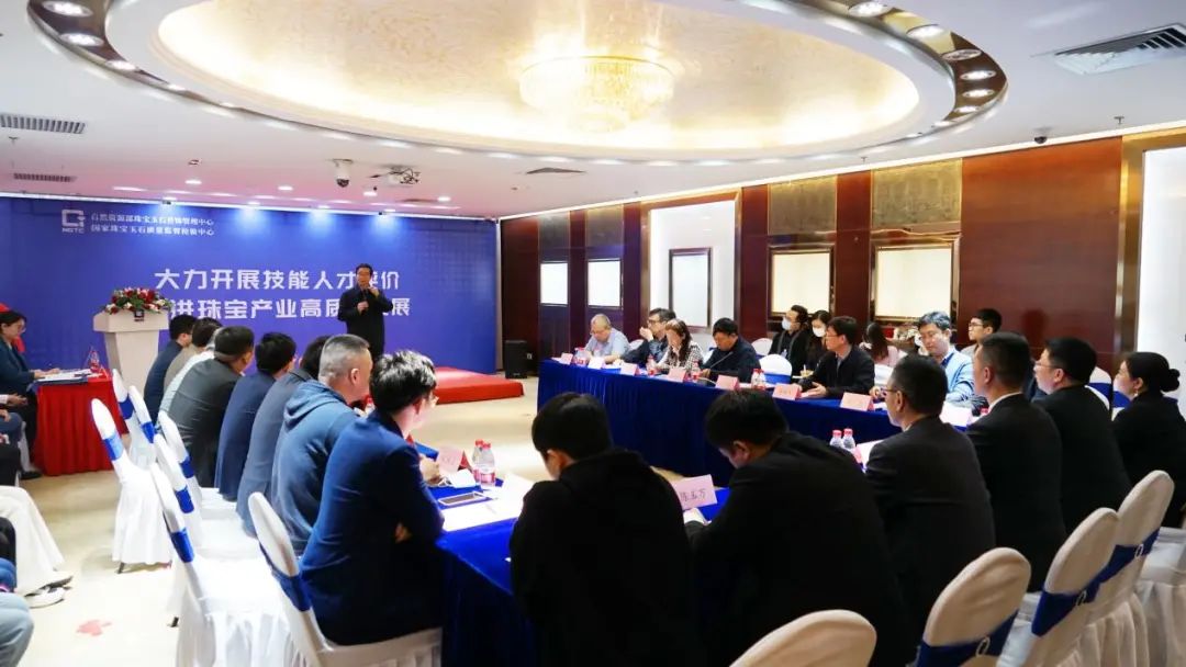 2021 年 3 月 10 日下午,“大力开展技能人才评价,促进产业高质量发展”座谈会在国检珠宝大厦顺利举行。珠宝国检(NGTC)党委书记 、主任、中国珠宝玉石首饰行业协会会长叶志斌、珠宝国检(NGTC)党委副书记梁振杰、副主任孙凤民一行领导出席当天会议。