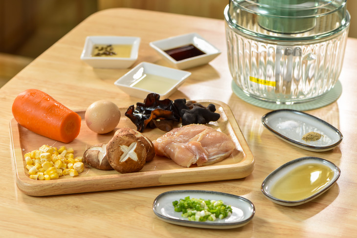 1、将所有食材洗净,木耳提前泡发,玉米掰粒。