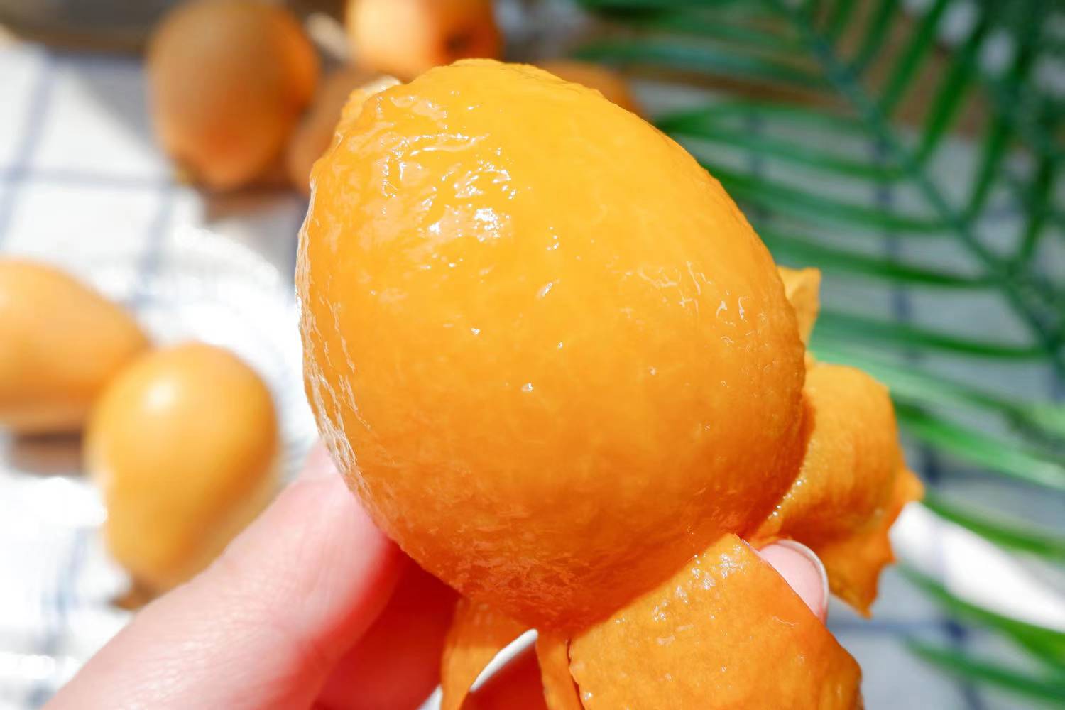 枇杷肉厚核小,特别好剥开,橘黄的果皮一撕,汁水就溢了出来,露出黄澄澄、饱满的果肉,晶莹剔透,光是看着就人满口生津。