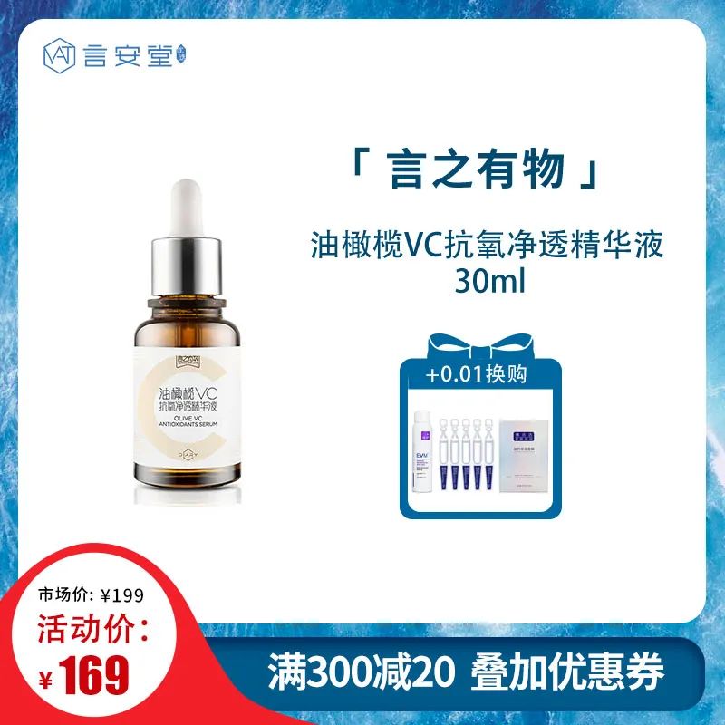 言之有物油橄榄VC抗氧净透精华液、言之有物肌透洁颜露、言之有物霍霍巴油。