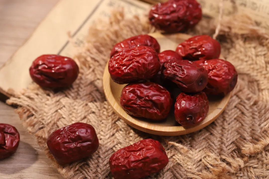 大枣,归脾、胃经,性味甘、温,功能主治:补中益气,养血安神。用于脾虚食少,乏力便溏,妇人脏躁。