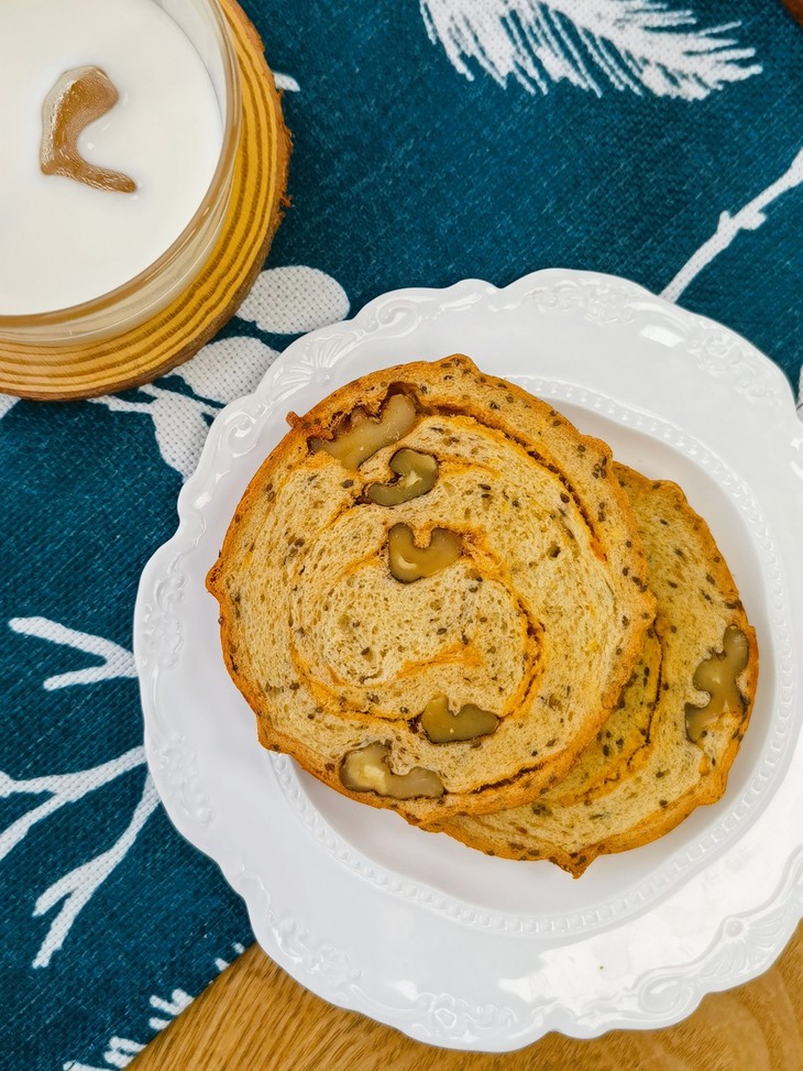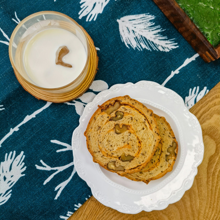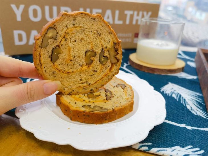 面粉,新鲜牛奶,鸡蛋,核桃仁,肉松。鸡蛋,进口黄油,奇亚籽,胚芽,白砂糖,酵母,盐
