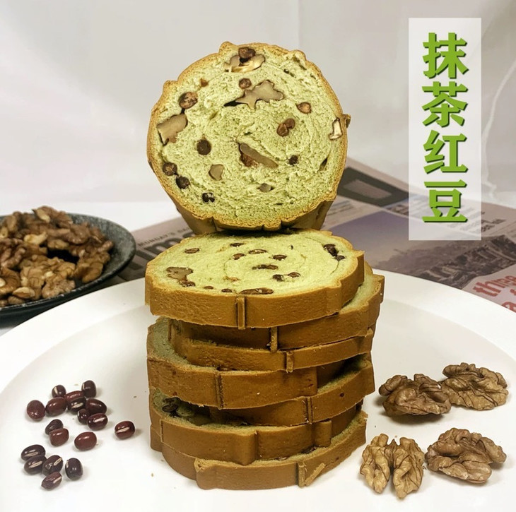 配料:面粉,抹茶粉,新鲜牛奶,鸡蛋,核桃仁,红豆,黄油,白砂糖,酵母,盐。