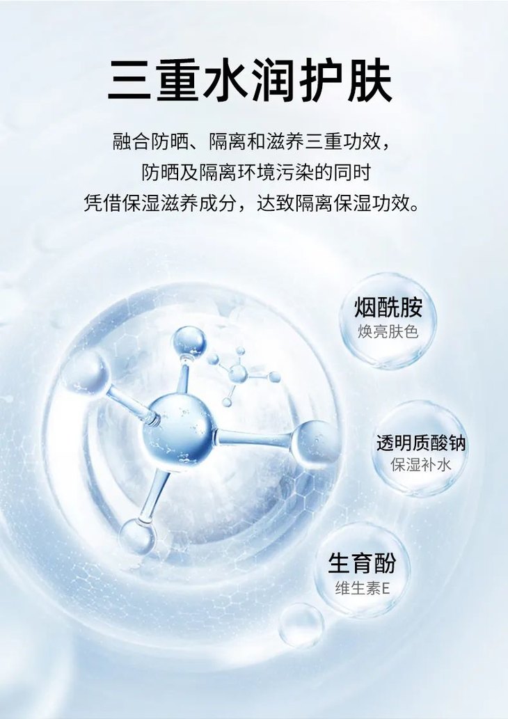 三重能力对抗肌肤暗沉,抵御紫外线,轻松遮盖瑕疵,上脸服帖度特别nice , 奶油肌的感觉,被它狠狠的拿捏住了!