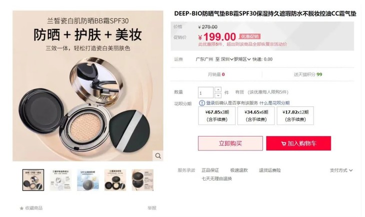 重点是购买气垫还赠送同款定妆散粉和10g的正装气垫补充装。