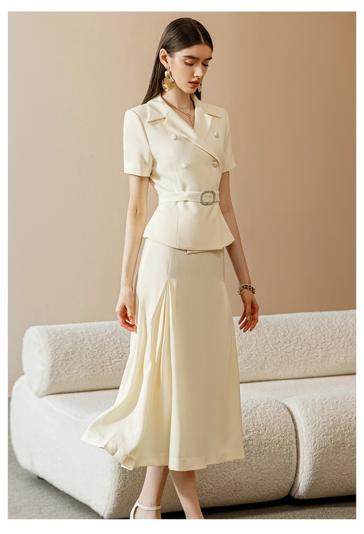 洒脱干练的西装外套搭配优雅浪漫的裙子