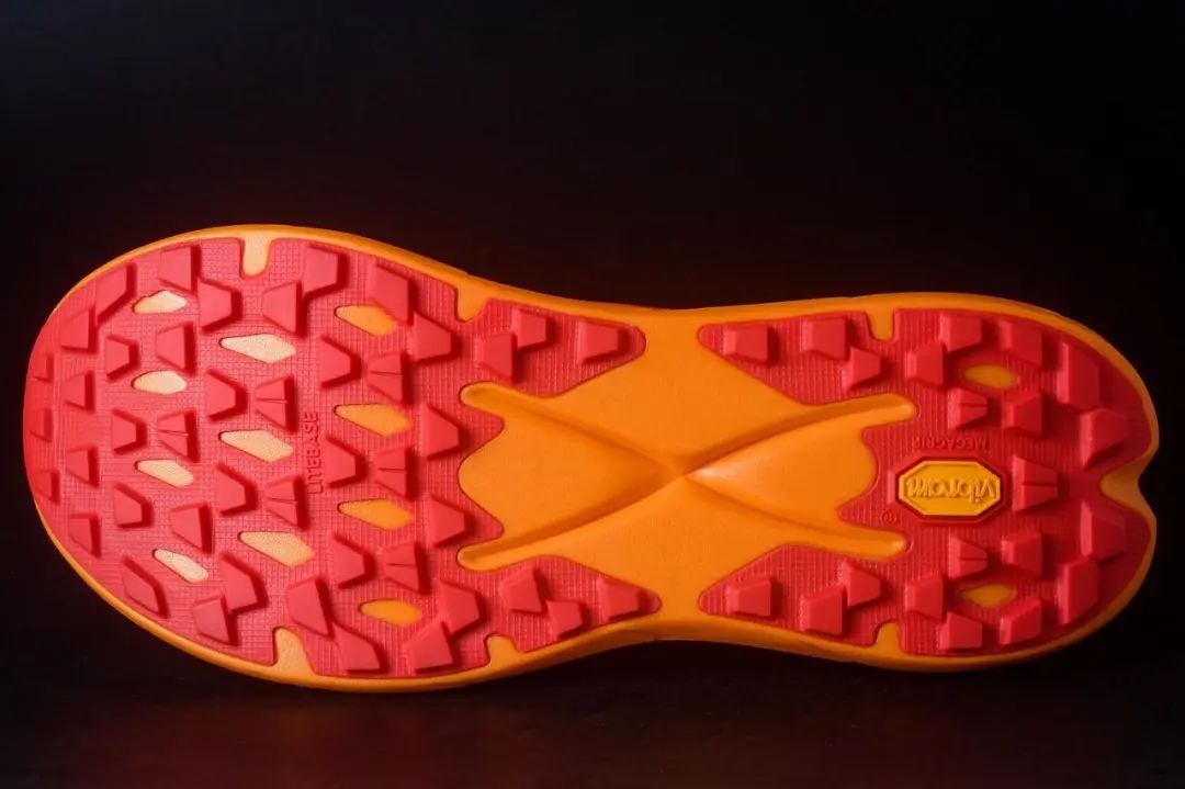 TECTON X使用VibramMegagrip配方Litebase技术大底,从材质上来说轻量化、湿地止滑、耐磨三个重要性能指标拉满,为了轻量化。