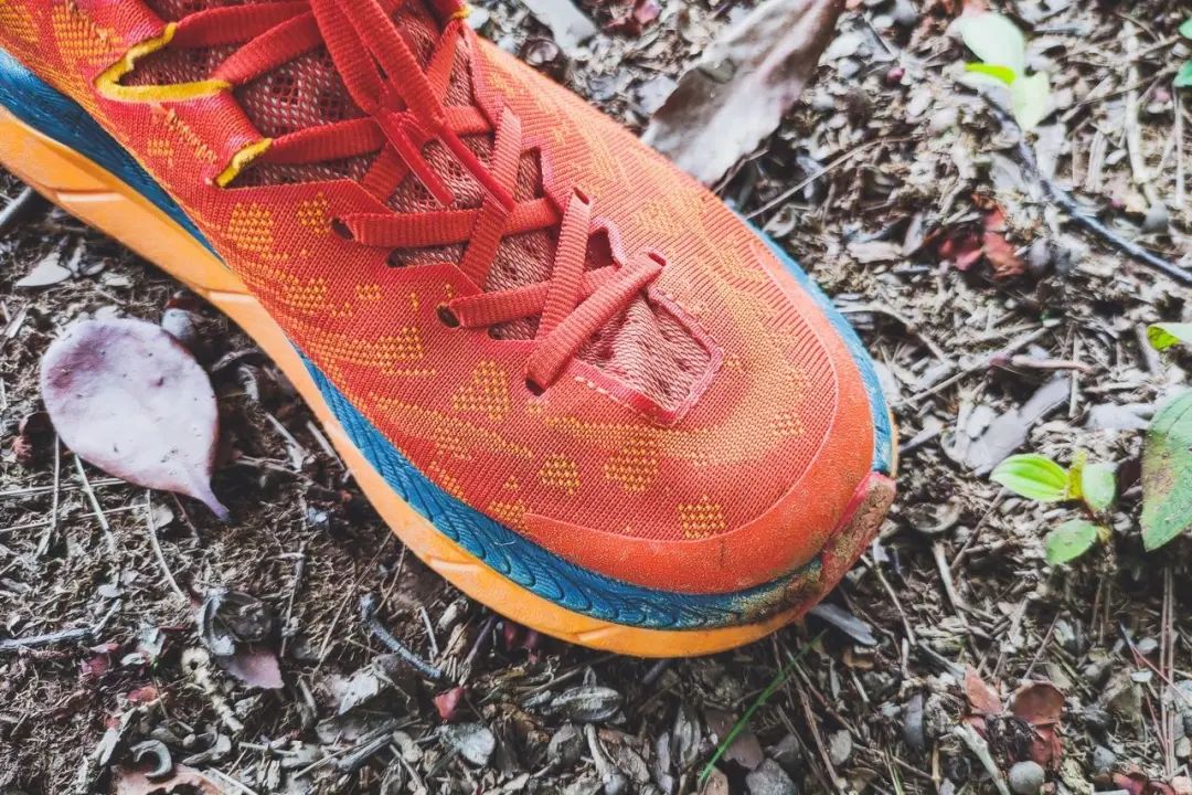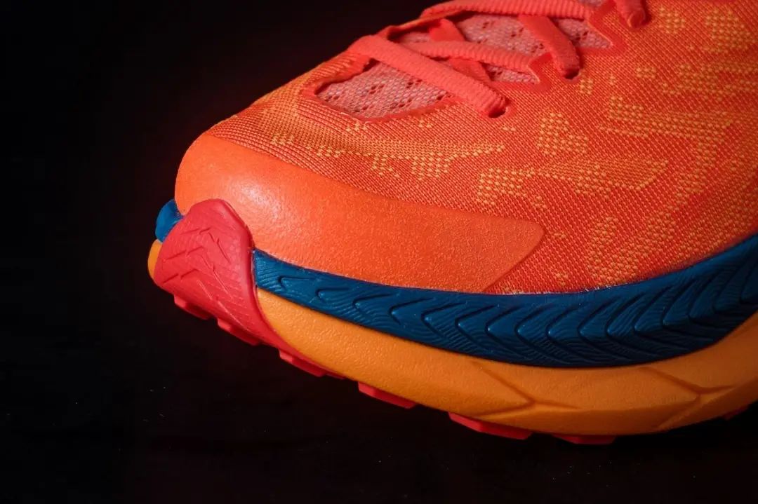 TECTON X只在前掌和后跟铺设中底,较少触地的中足部分中底外露,4mm的梯形齿耳更适合干燥硬实的硬土路面,在松散、崎岖、泥泞的技术路面时表现会有所下降。