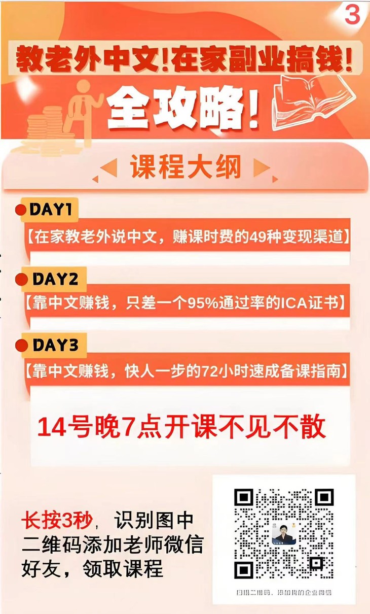 无论你是上班族、自由职业者、宝妈还是在校学生,只要你对国际中文教师感兴趣,即可扫描下方二维码立即免费咨询!
