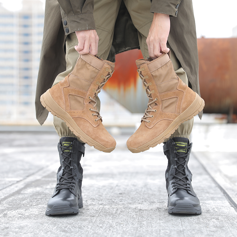 ● EVA中底+轻质耐磨橡胶大底,罗斯弯曲达125,000次。1000D耐磨尼龙拼接进口牛皮,兼顾轻量与耐用。透气鞋眼保持干爽,舌翼一体防止砂石进入。