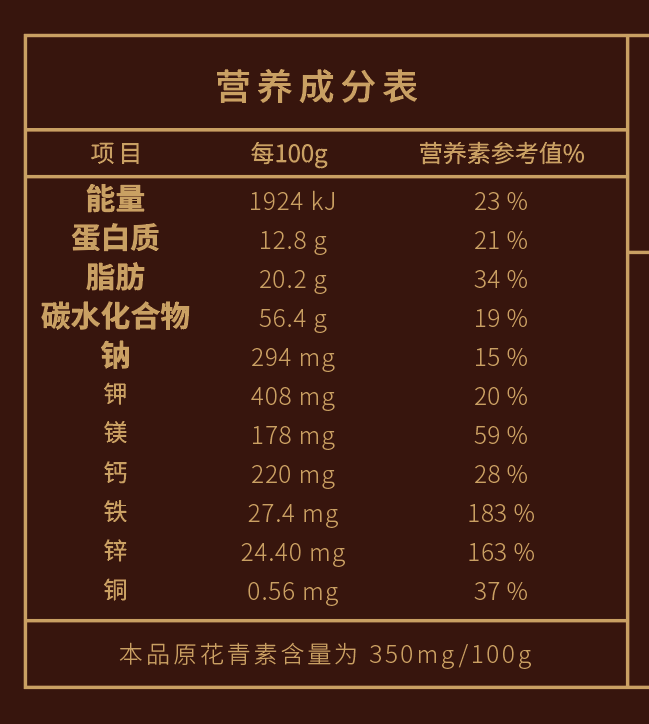 在众多营养师和医师的多次尝试后,决定在“五黑”的基础上加入南瓜籽、核桃、黑加仑、竹盐、亚麻籽油来提供更多的营养和更丰富的味觉体验,辅以麦芽糖、葡萄籽油、蜂蜜来提升口味。