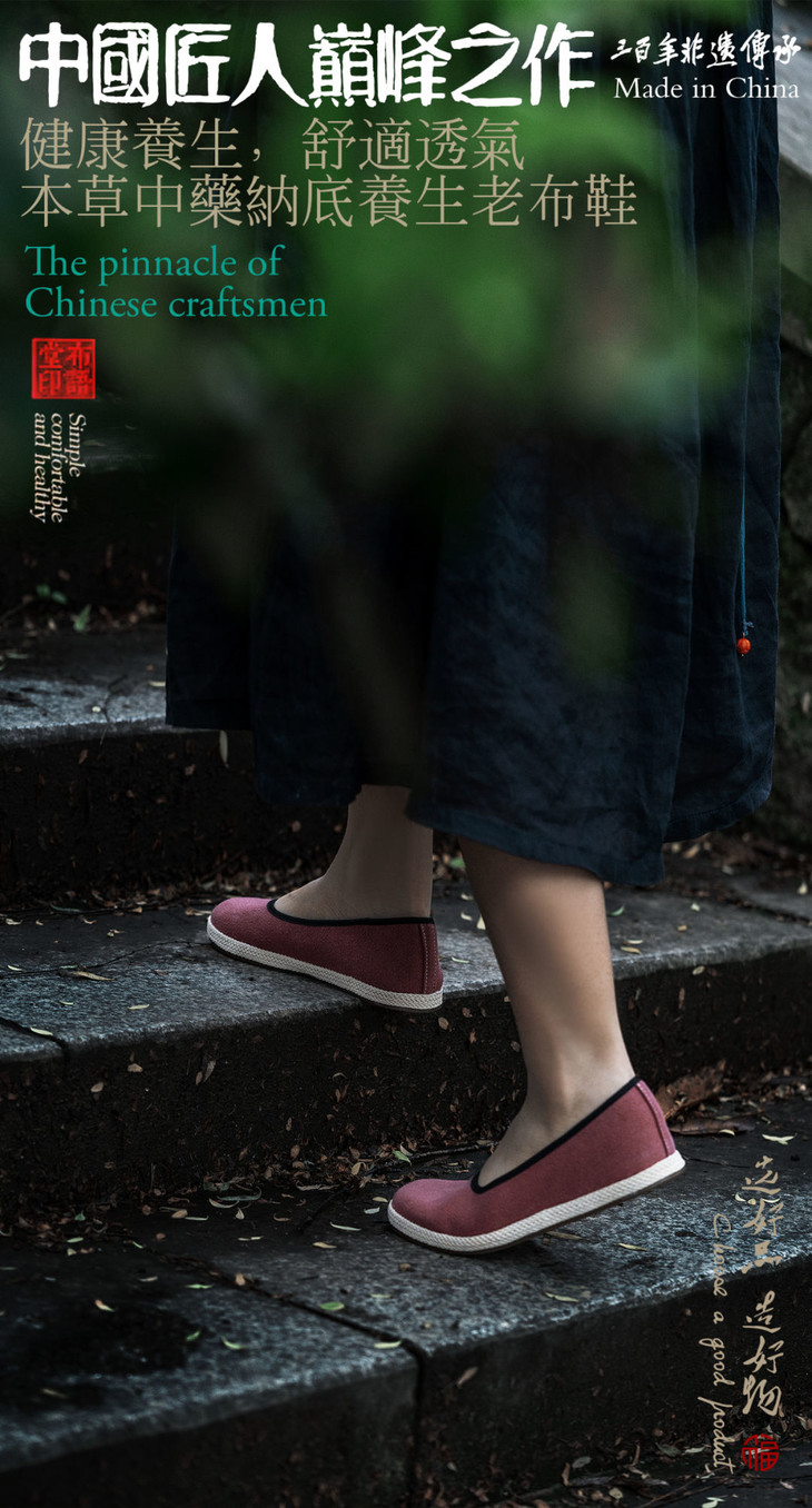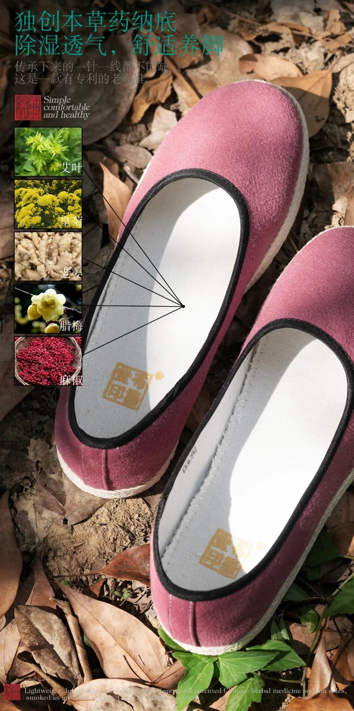 相比市面上的纯布鞋鞋底,它里面的草本植物的特性可滋养足底,协助养身。