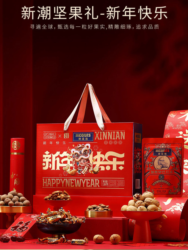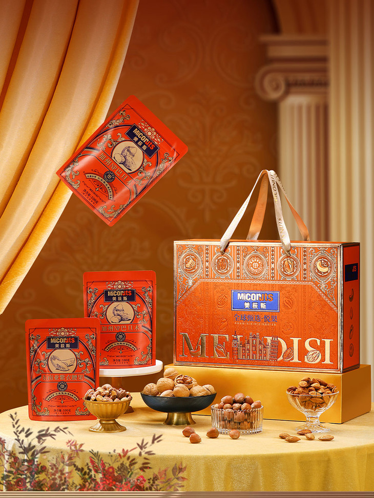 年关送礼场合不要太多,商务聚会、亲朋聚会、好友聚会,一箱高端品质坚果美荻斯,百元的价格,有里有面倍敞亮~