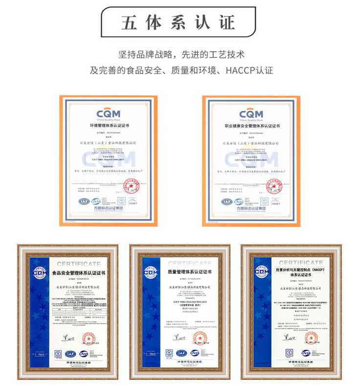 品牌经过5体系认证,品质和好吃程度都是拔尖的。
