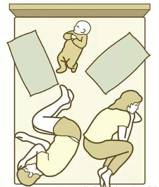 一家三口销魂睡姿——应该很多家庭都经历过吧,如此这般睡姿,睡眠质量差,直接影响宝爸宝妈一天的工作质量,也还会让宝宝没有好的睡眠姿势,影响生长发育。