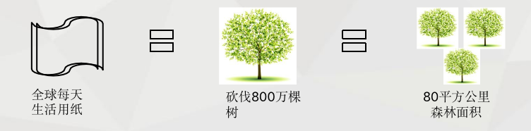 全球95%纸巾行业使用木浆造纸,每天砍伐8000000棵树,相当于80平方公里的森林 面积。树木生长周期长,砍伐需重新植林再造,不可再生,过度砍伐树木,造成水土流失,会极具影响人们生活.