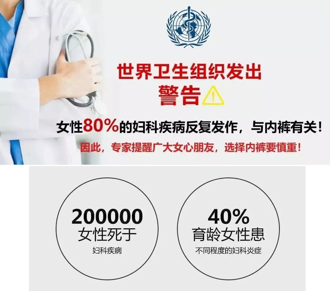 世界卫生组织有调查报告显示:女性80%的妇科疾病反复发作都与内裤有关!