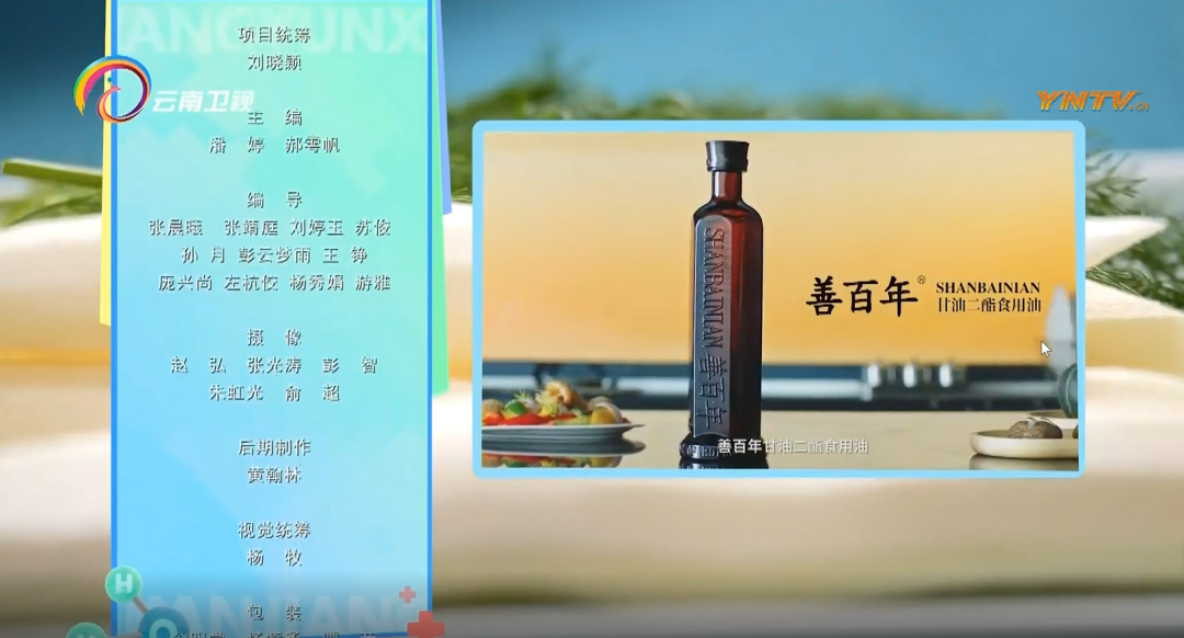 5月19日,国内二酯油开创者善百年登陆云南卫视《云享健康》,将旗下明星产品二酯食用油推荐给广大观众,让更多人开始重新审视饮食健康,以更健康营养的方式拥抱生活。