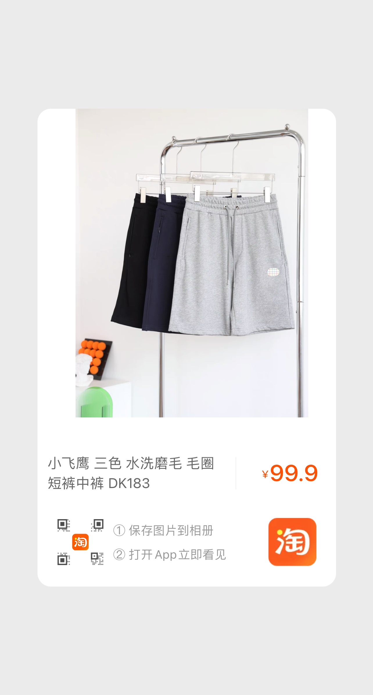 小飞鹰 三色 水洗磨毛 毛圈短裤中裤
