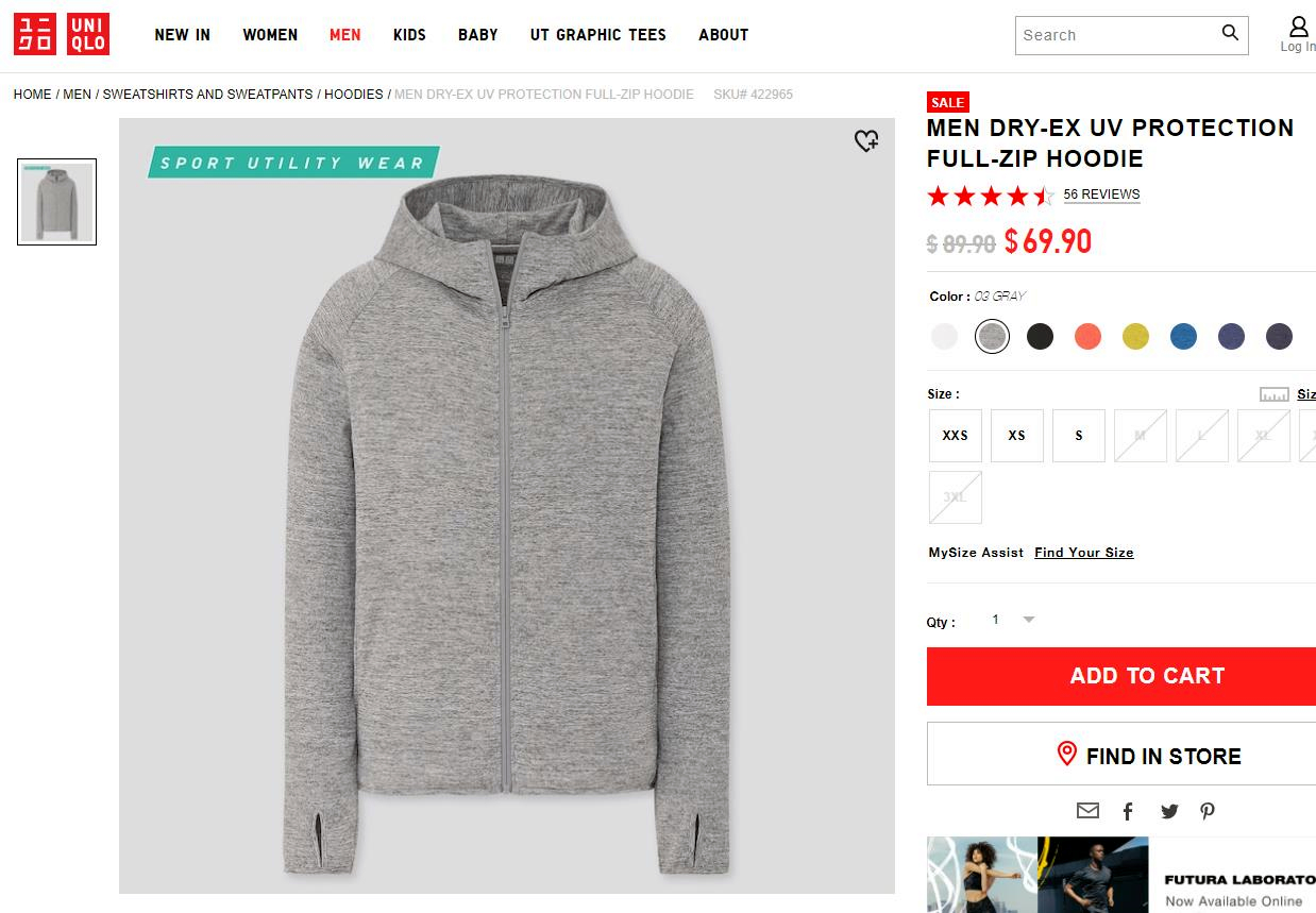 UV CUT UPF40 户外防紫外线功能科技 HOODIE连帽 可以在夏天室外时 包裹整个头部 以达到更全面的保护