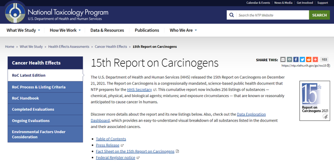 12月21日,美国卫生及公共服务部发布了最新版——第15版致癌物报告,新增了8种致癌物。在最新报告中,幽门螺杆菌被列为明确致癌物,而用作阻燃剂和自来水消毒的六种卤代乙酸(HAA)物质被列为合理怀疑的人类致癌物。