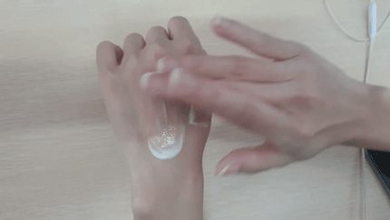 轻轻涂开后轻薄的乳液慢慢侵入并覆盖了一大片肌肤,感觉乳液会自动填充,不用重新抹一遍。