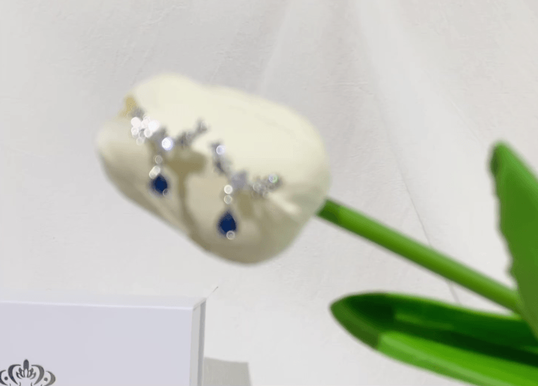 耀眼的钻石下挂着宝石,轻轻晃动时摇曳出细闪。