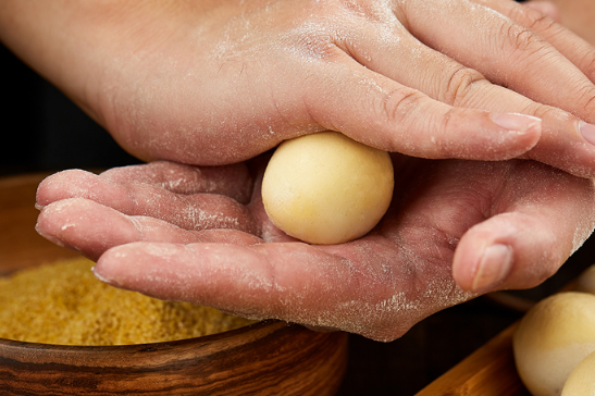 除了经典黑芝麻和花生仁的馅料之外,还有八宝馅和红薯馅供大家选择!