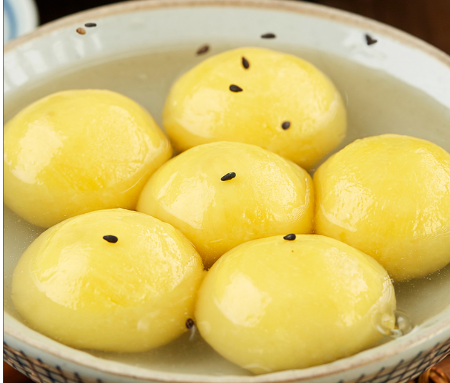 大黄米汤圆采用优质水磨糯米粉、大黄米粉,配以各种馅料精制而成,口味香甜爽滑。