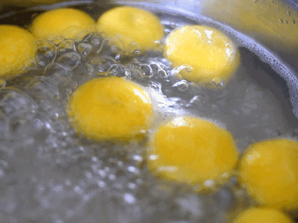 3、汤圆放入锅中,炸制五分钟呈金黄色
