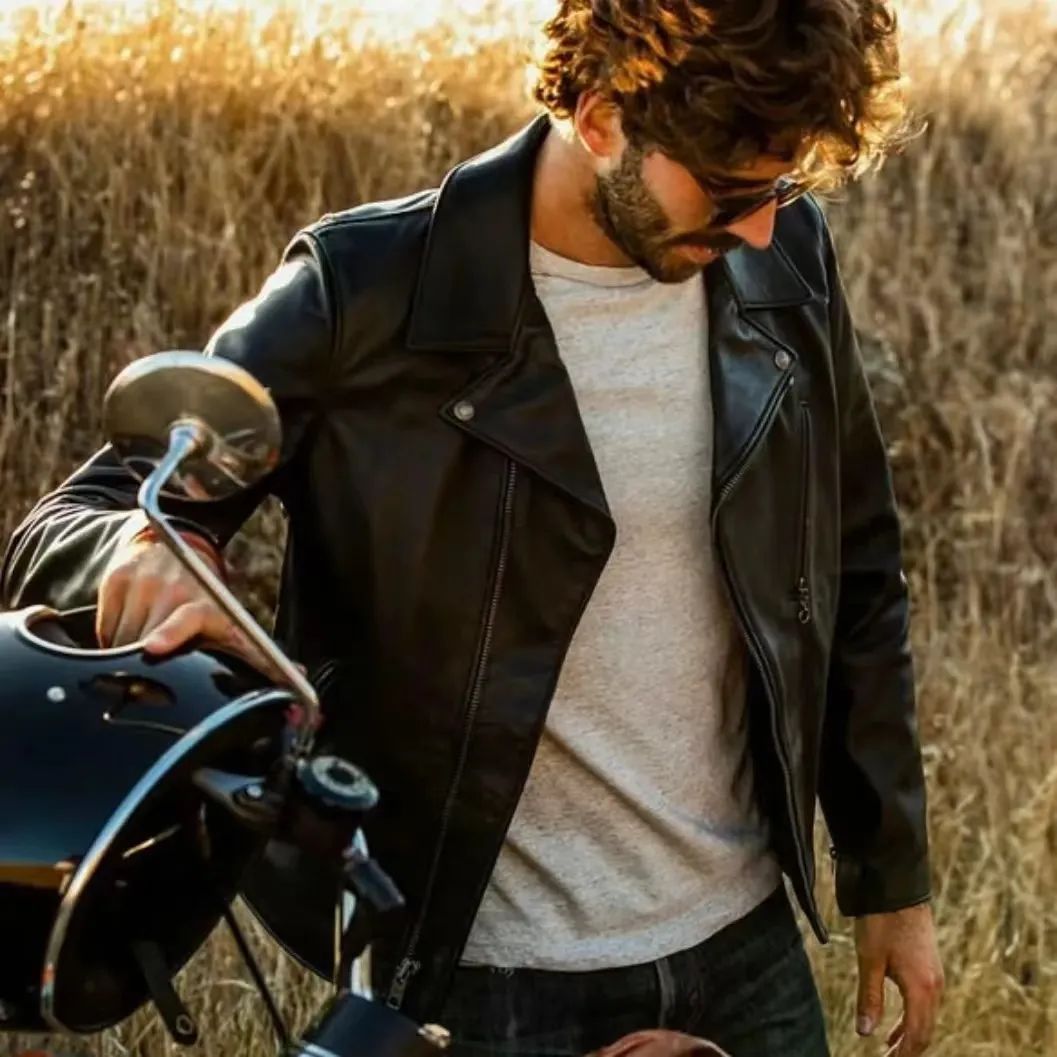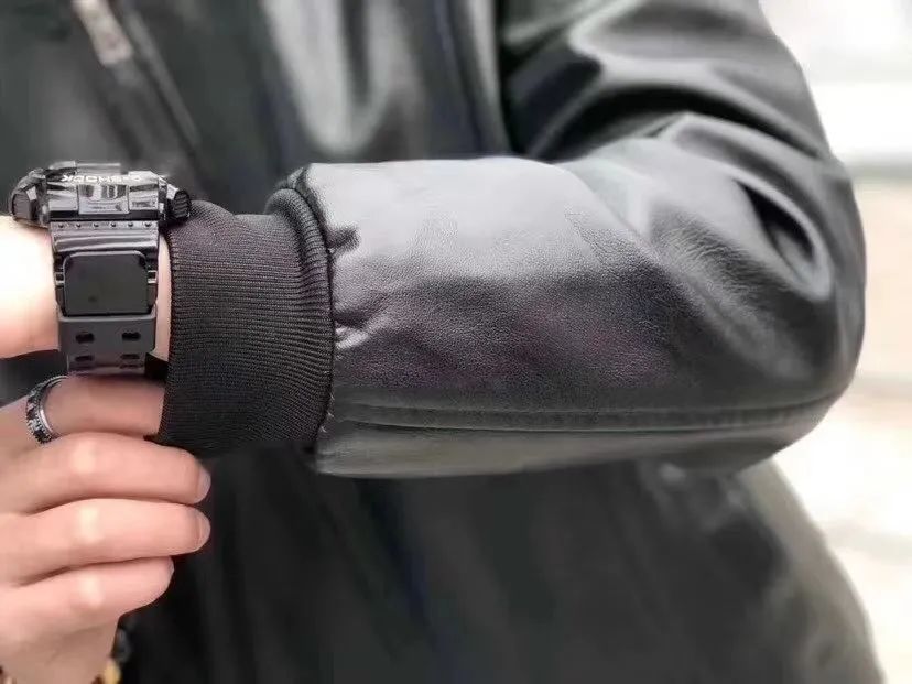 简约设计,精工裁剪,硬朗版型,松弛有度,上身效果杠杠的。 细腻柔和质感的皮革,加上硬朗的版型剪裁,衬托出男性成熟稳重的魅力。