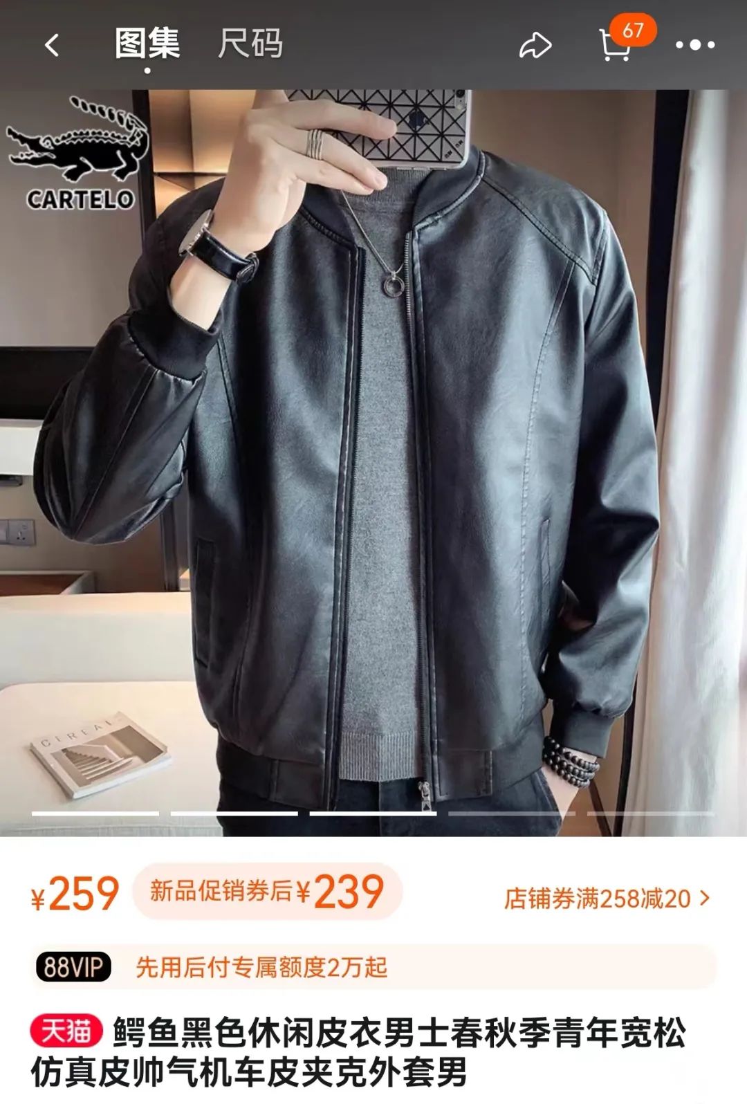 男士请进!!76年品牌卡帝乐鳄鱼加绒皮衣夹克,又酷又有型,现1折入!