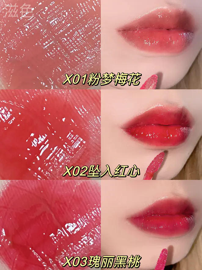 #X02坠入红心 超正的爆浆草莓红,像是鲜榨的冰糖草莓汁,显白不说镜面感也好绝,谁涂谁靓