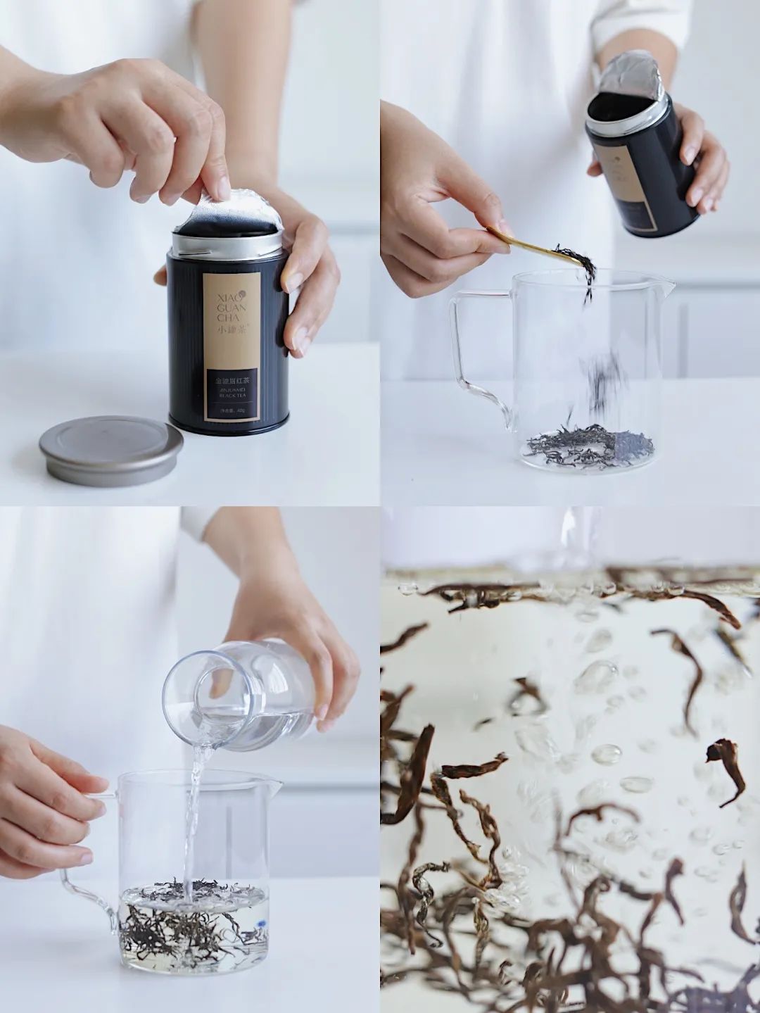 ① 提前泡好红茶:准备好金骏眉红茶倒入干净的茶壶中,倒入纯净水,茶叶与水的比例为1:80-100,然后摇晃一下让茶叶都浸泡于水中,盖好上盖常温静置4小时。
